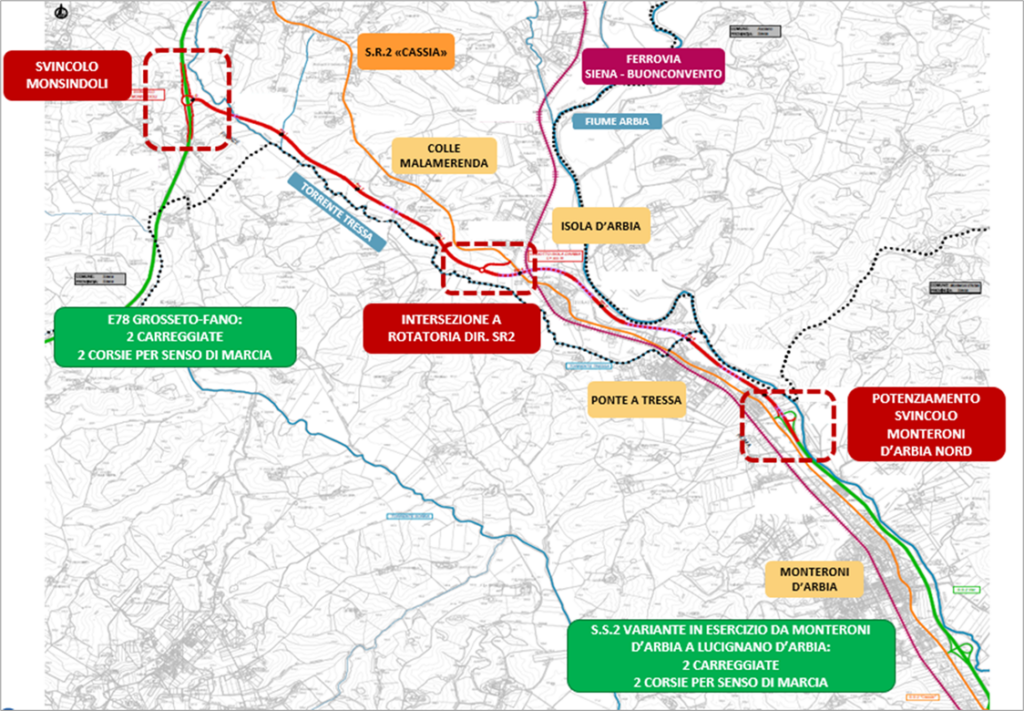 Quando la Cassia torna a essere una strada statale e Anas la prende in gestione, finalmente qualcosa cambia. A febbraio 2024 Anas fa sapere di aver ultimato e presentato la progettazione esecutiva delle opere di completamento. Soltanto alcuni giorni fa – il 27 novembre 2025 -, invece, arriva la notizia che “il consiglio di amministrazione di Anas ha approvato il progetto esecutivo per i lavori di completamento della strada statale 2 Cassia tra Siena e Monteroni d’Arbia, per un investimento complessivo di circa 120 milioni di euro”. Ricordando che “i lavori, in parte eseguiti dalla Provincia di Siena nel periodo di gestione dell’infrastruttura, sono rientrati nelle competenze di Anas dopo la riclassificazione della Cassia come strada statale”. E che Anas “ha eseguito le attività di progettazione, gli iter autorizzativi e le procedure di finanziamento”.
